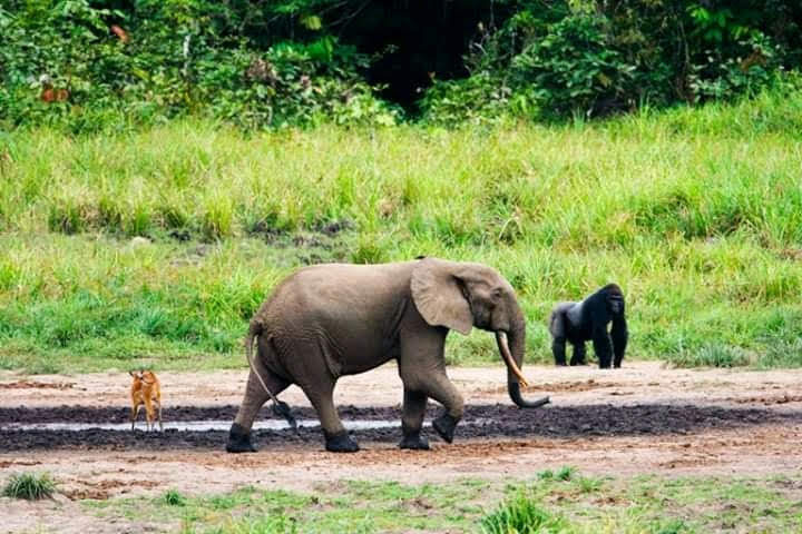 Departure in the morning by pirogue to Bayanga on the Sangha River, arrival reception and installation then departure for Sangha Bai in a clearing on a platform where you will admire the ballet of Elephants who come and go by a constant and very animated movement with sometimes hundreds of individuals who stay there almost all day long. There are also Buffaloes, Bongos, and other antelopes etc., return to Doli Lodge****, dinner and overnight stay.